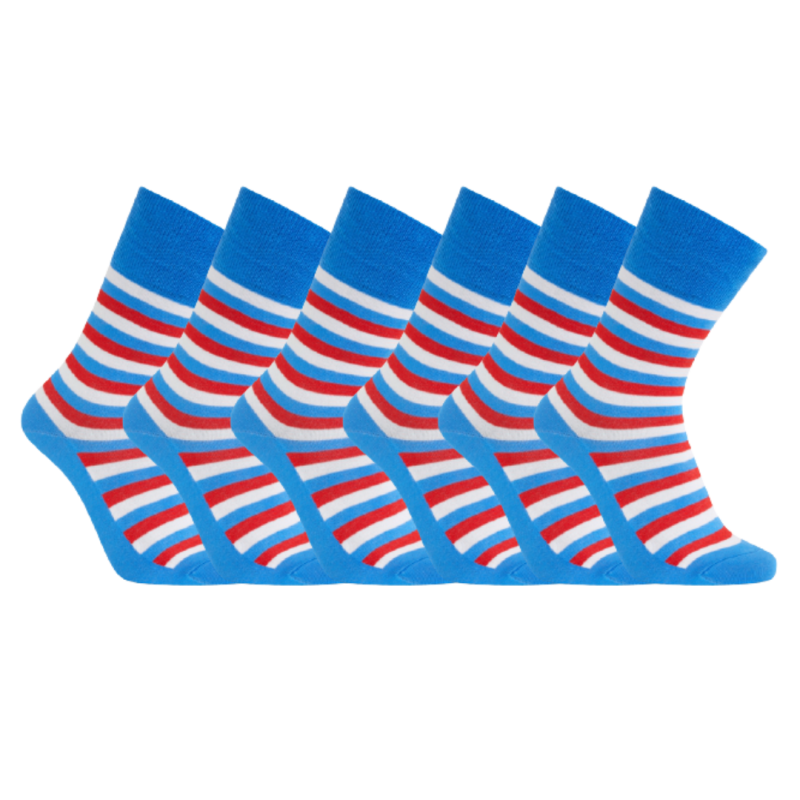 Denne smarte 6-pak indeholder strømper der er fremstillet i bambusmateriale, der lader fødderne ånde og samtidig føles behagelige og bløde mod huden. Denne pakke er i farven blå, rød og hvide.